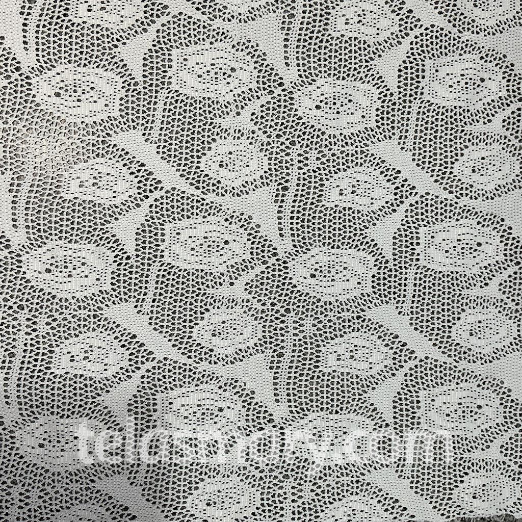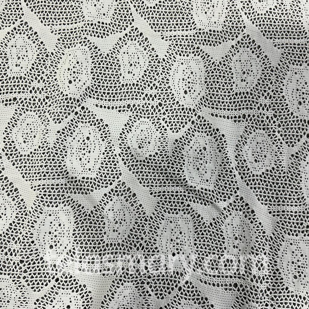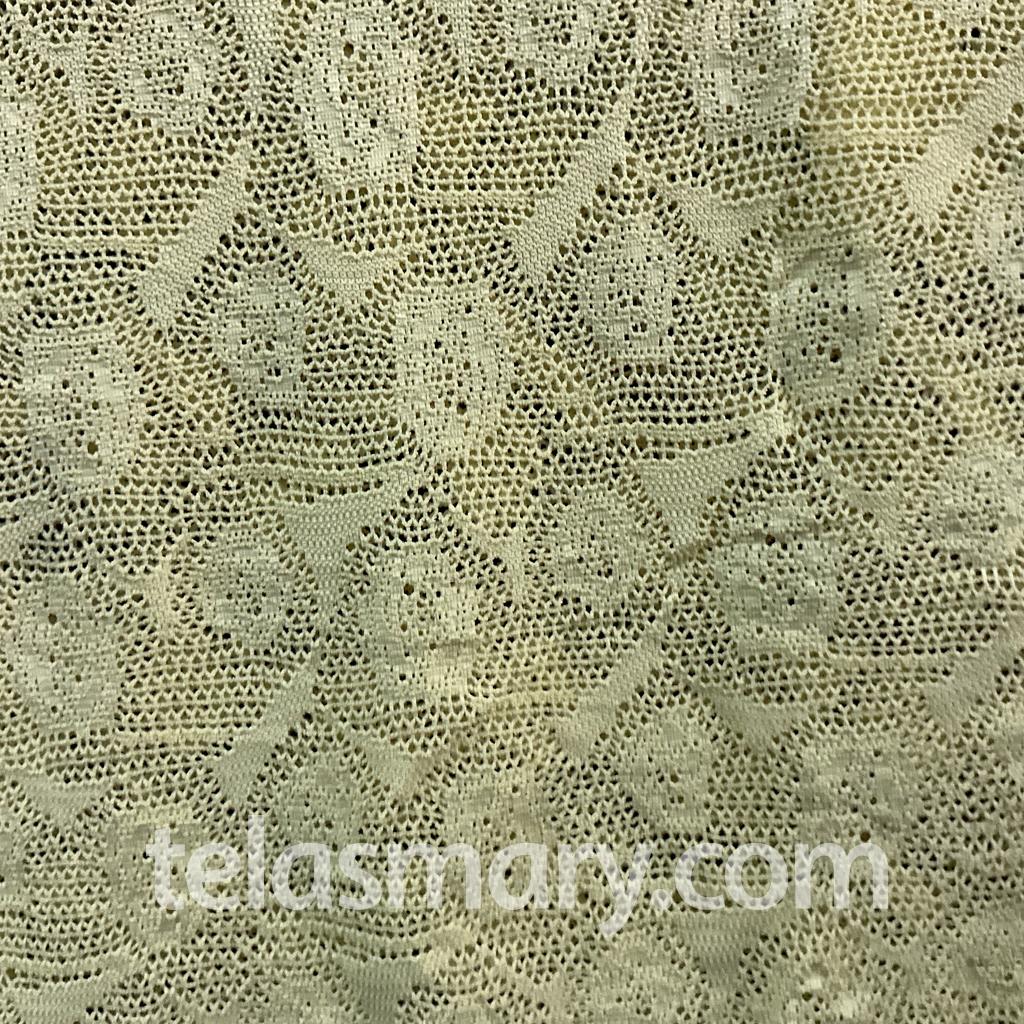 Este encaje es tendencia, con sus colores pasteles, y el toque de spandex que logra que se adapte al cuerpo. Ideal para vestidos, tops, faldas y blusas de verano.